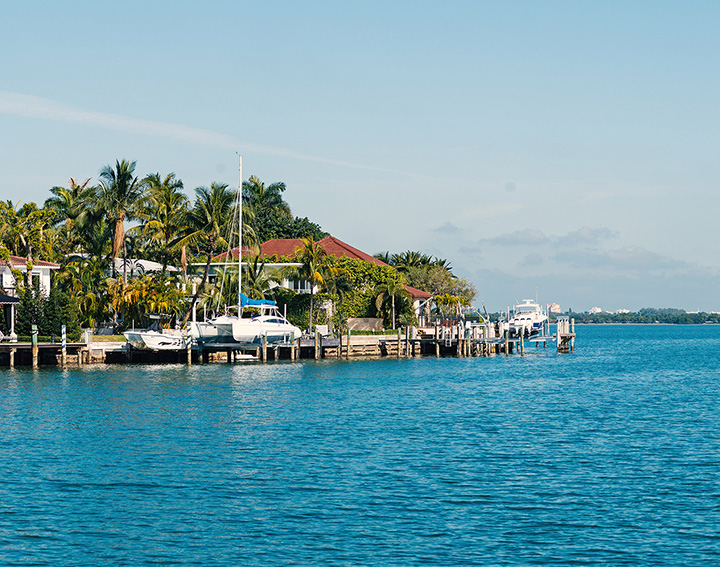 As you move further into Biscayne Bay and across to the Western side, you’ll find Dinner Key and its famous marinas with lots of little shops and restaurants and close to the village of Coconut Grove that is a really beautiful part of Miami.