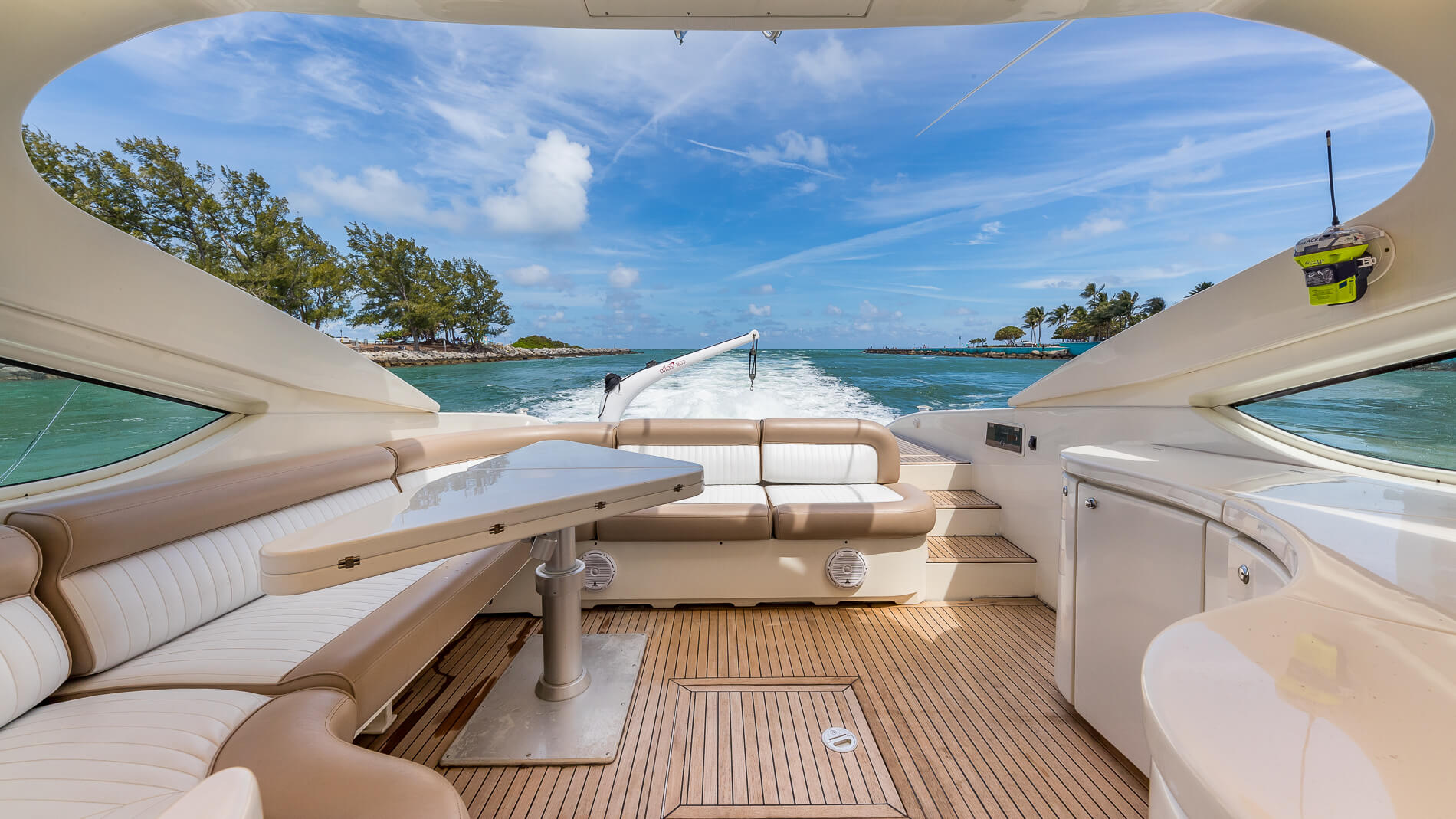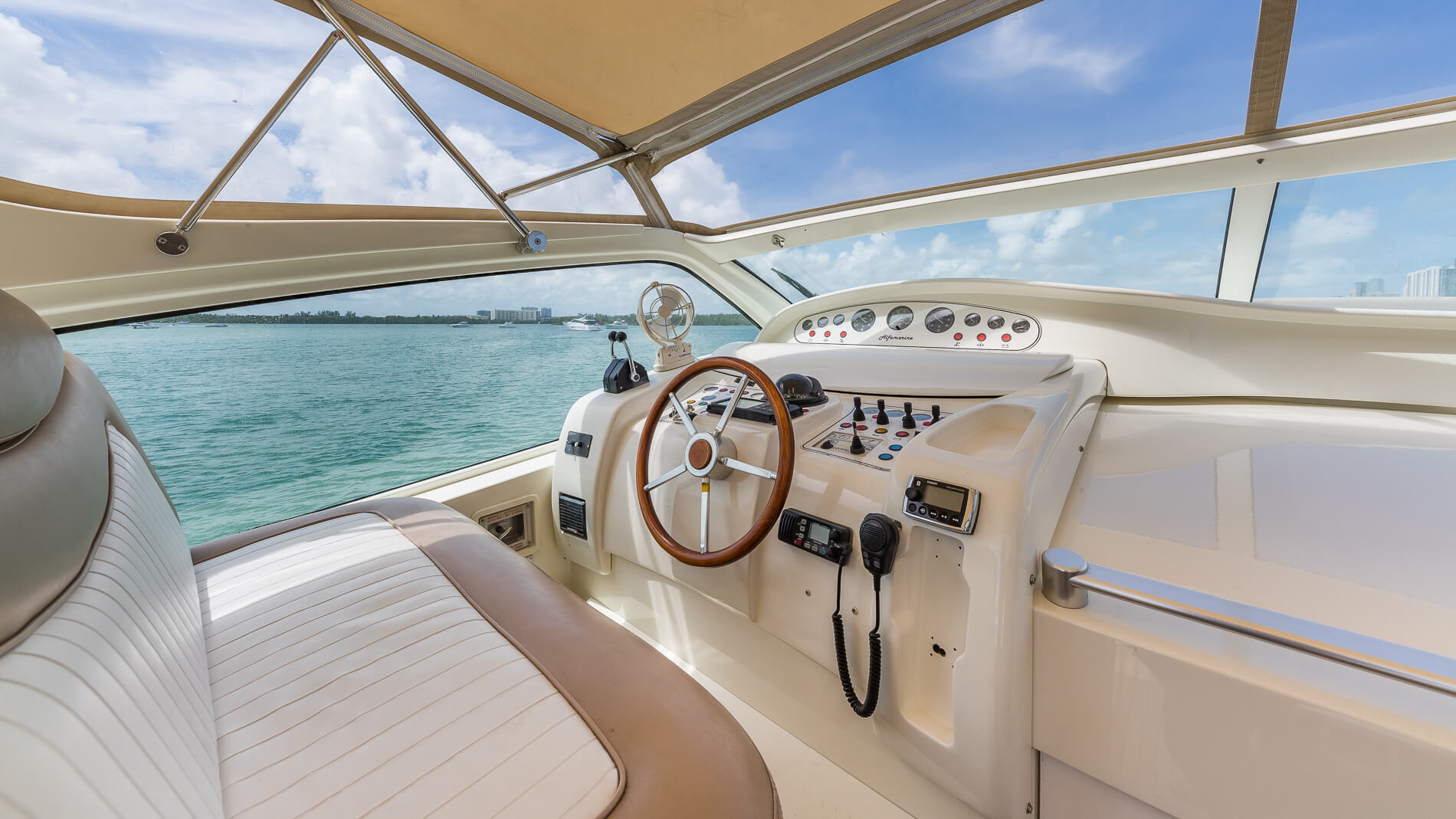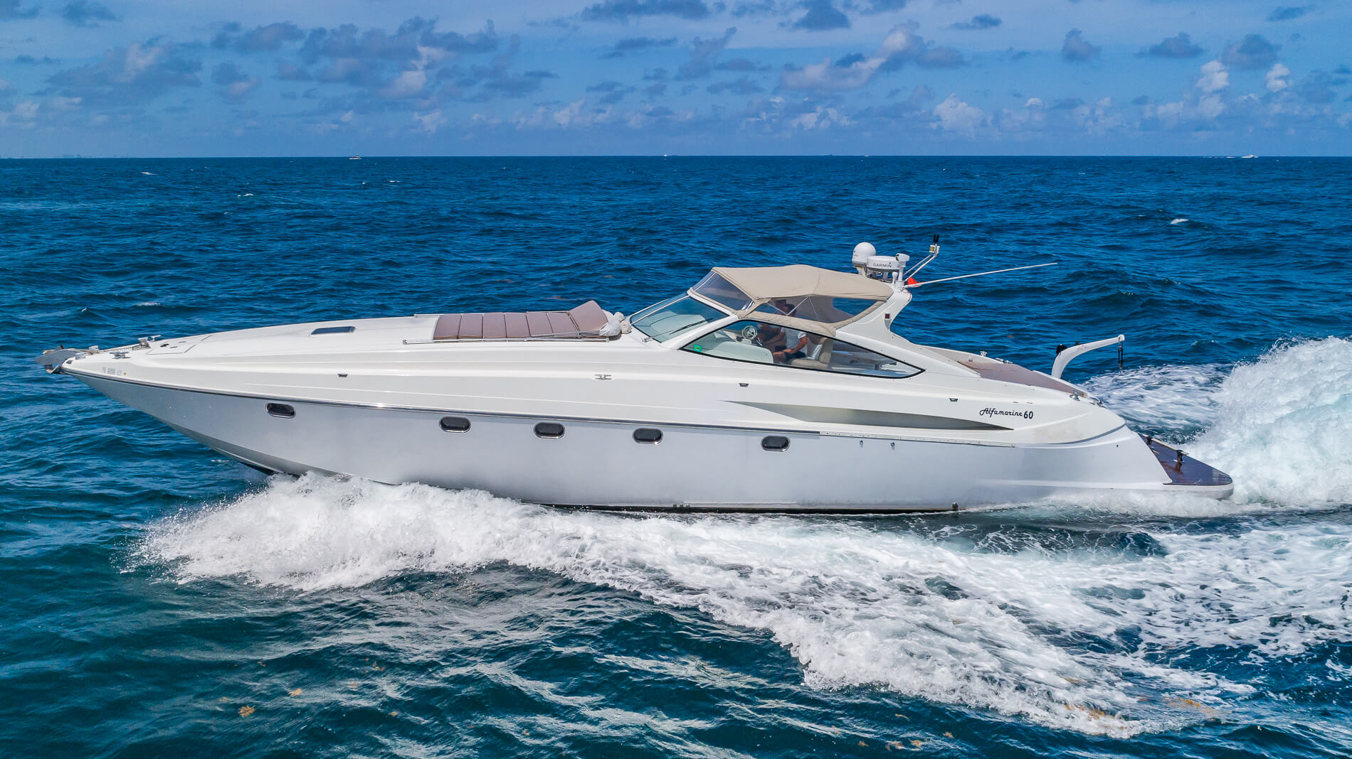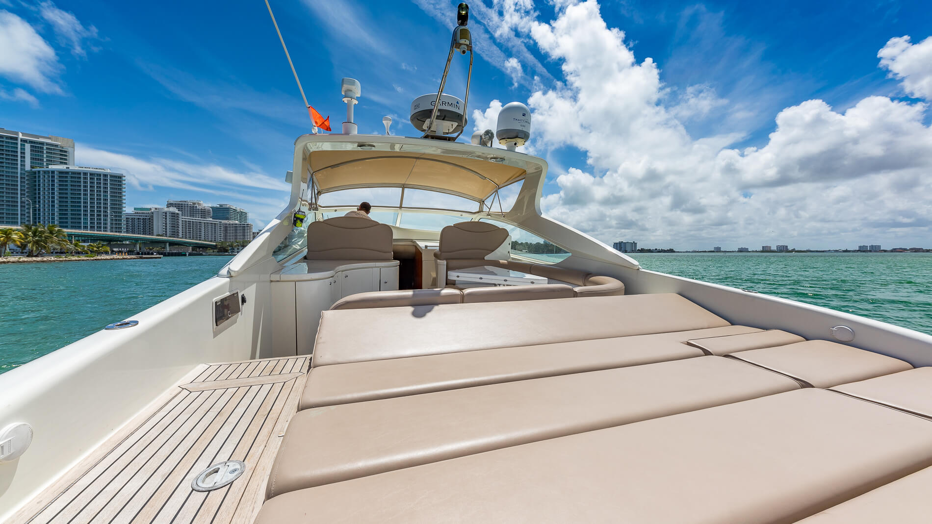 The Alfamarine offers the 50-knot excitement of a top-level powerboat in a luxurious and comfortable package. It has large sunbeds on both the front and back of the boat as well a large sofa area making it the perfect vessel for day charters in Miami or sunset cruises.