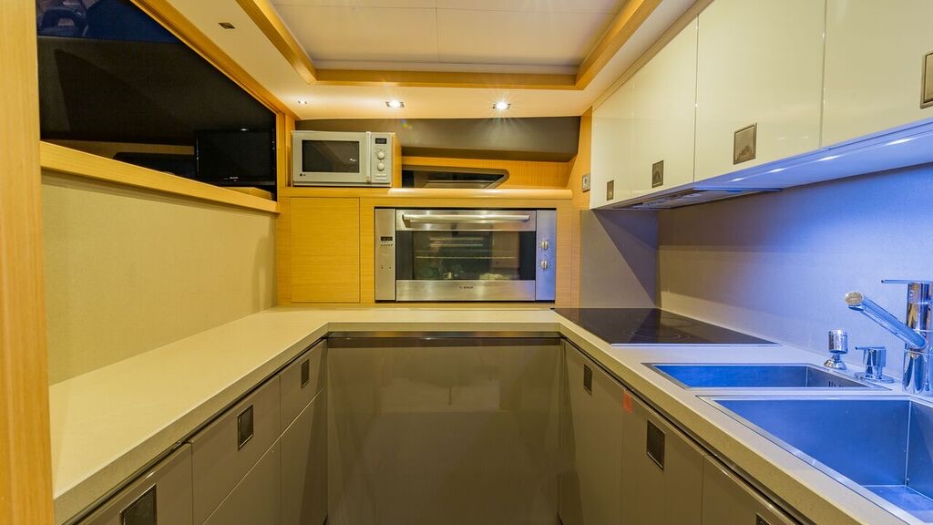 Innovation matched with a classic-contemporary design, the perfect recipe of Ferretti Yachts. The result is a yacht featuring wide interior spaces, with a layout generally adopted in larger vessels, blended with catchy external lines, enhanced by the use of color, in which wide windows characterize the external design, plunging interiors into an amazing quantity of light. This Beautiful Ferretti combines all the luxuries of home and all the pleasures of vacation resorts in a yacht which knows no limits.