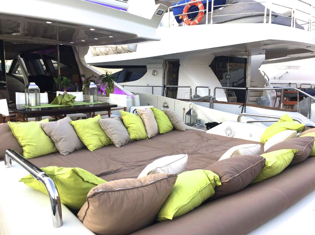 Powered by engine, the yacht has a top speed of 38 knots and can cruise at 28 knots.