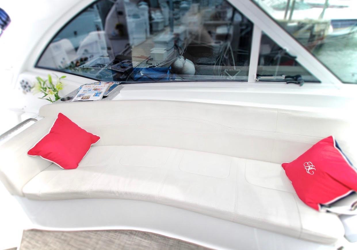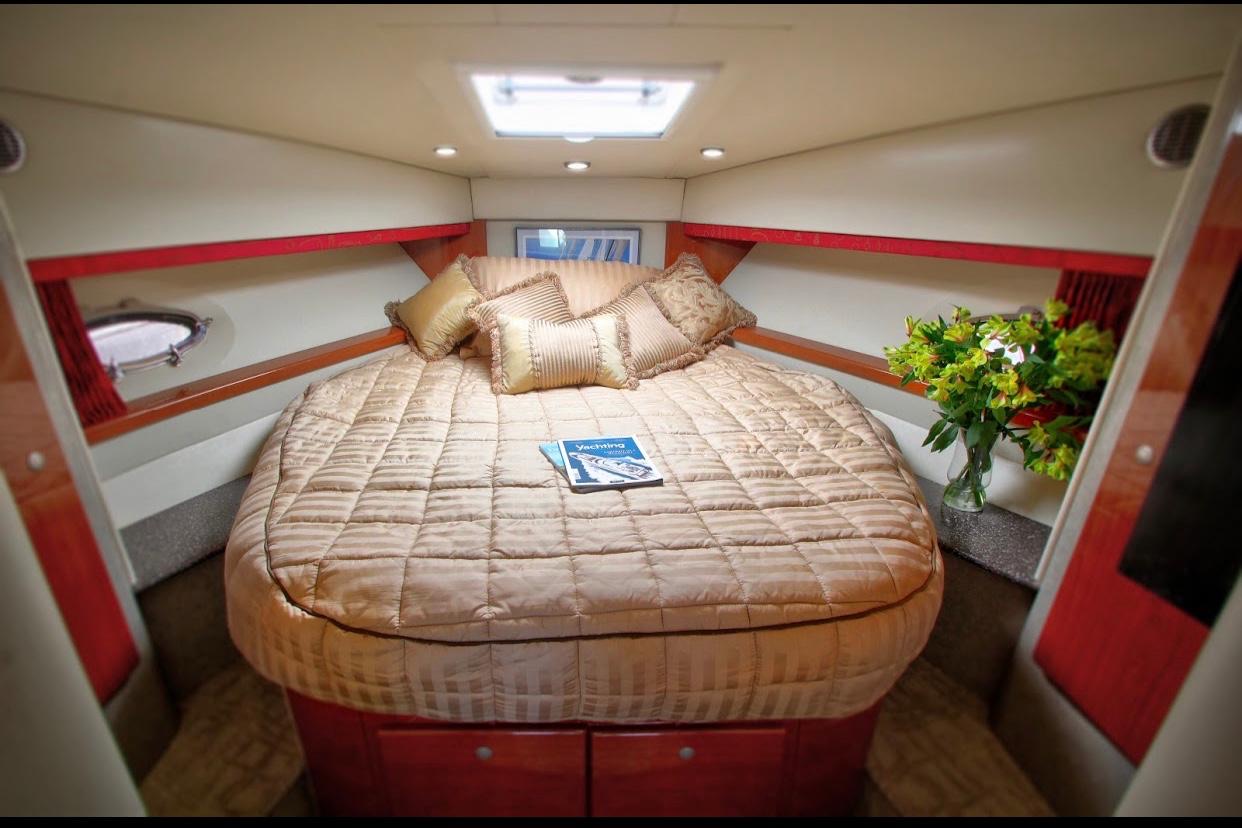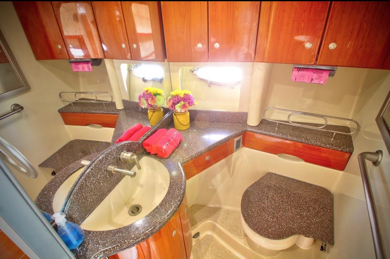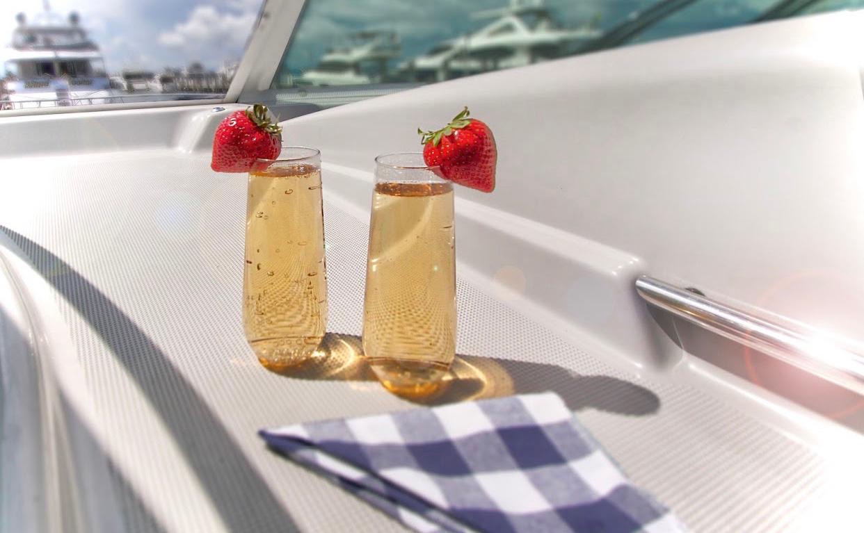 Our 48ft Vessel awaits you. Unwind or unravel and indulge your leisure time, our interior cabin features two bedrooms, two bathrooms, a dining sectional and a kitchen that includes a stove and a microwave. Need Apple® TV? You can watch it here.