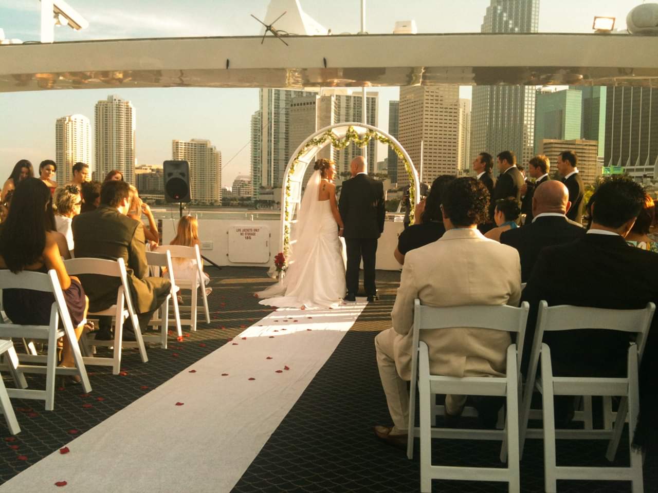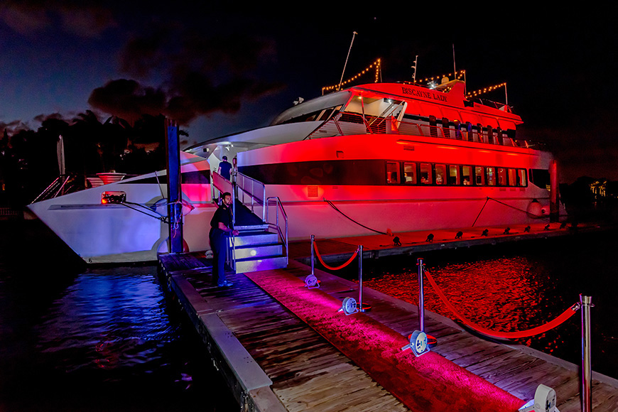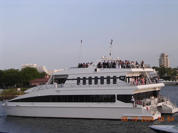 “Biscayne Lady” is a 111-foot, 400 passenger Austal manufactured luxury party yacht. Using state of the art marine construction technology, the new five million dollar vessel features a 45-foot beam and 8-foot ceilings. With its catamaran designed twin hulls, “Biscayne Lady” offers the most stable and comfortable cruising experience on Biscayne Bay. Her modernly designed interior with contemporary decor and ample exterior spaces provide the perfect setting for corporate events, weddings, and birthday parties of any kind!