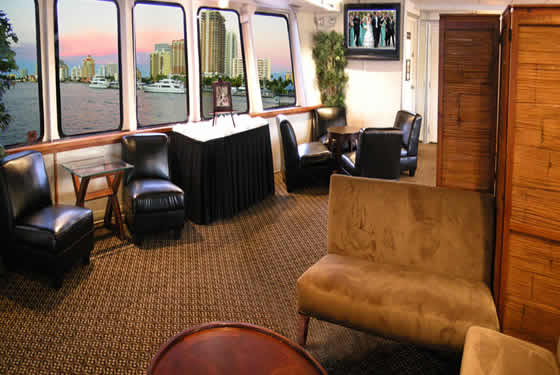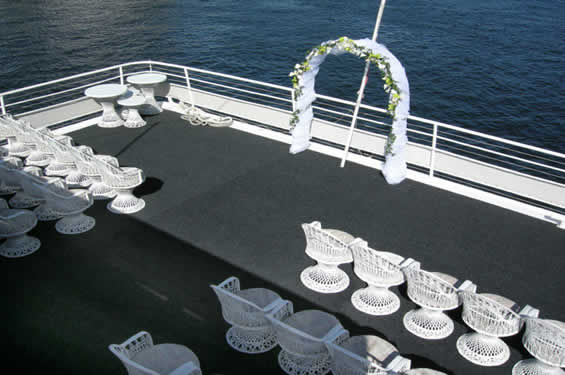 Catalina can provide seated dinners for up to 250 guests and buffet service for over 500. The main dining room is a massive 2700 square feet surrounded by bay windows and featuring a teak dance floor and full sound system. The forward area of the main deck can be utilized to maximize seating or as a main salon.